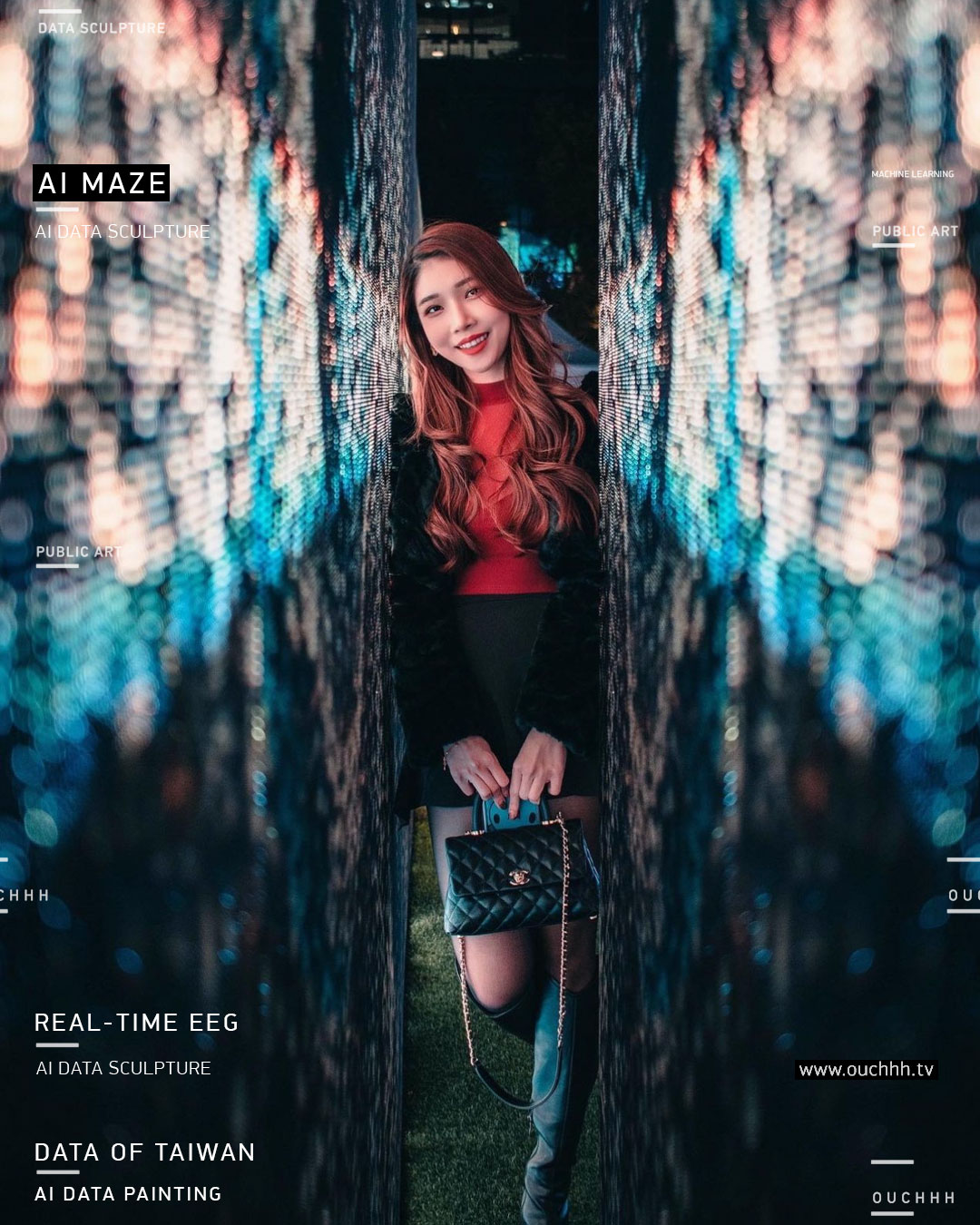 To participate in the "2023 Taiwan Lantern Festival in Taipei" and celebrate the 25th anniversary of PxMart Taiwan, OUCHHH was invited as a lead artist to co-produce "Portkey of the Maze_PX 25", the immense light landscape is a feast of eyes, soul, and exploration of the charm of Taipei City in age of Metaverse.